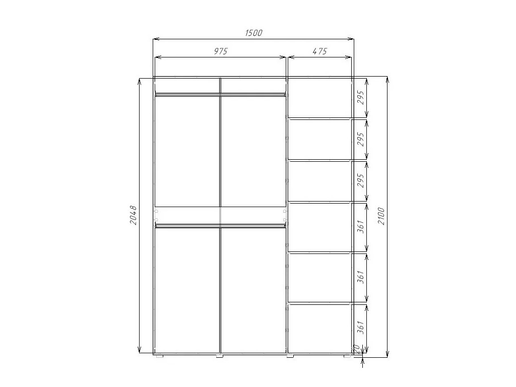 - Высота, мм: 2100