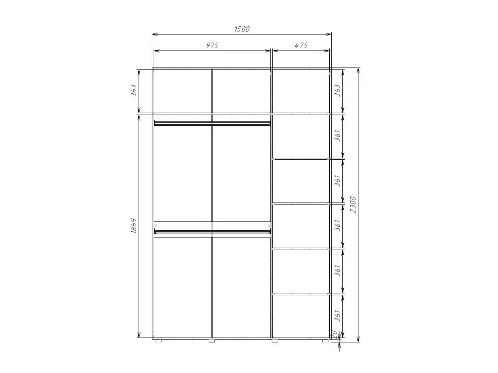 - Шкаф Гранд ГШК/2-23-15-222 (двери тип 2) с одним зеркалом