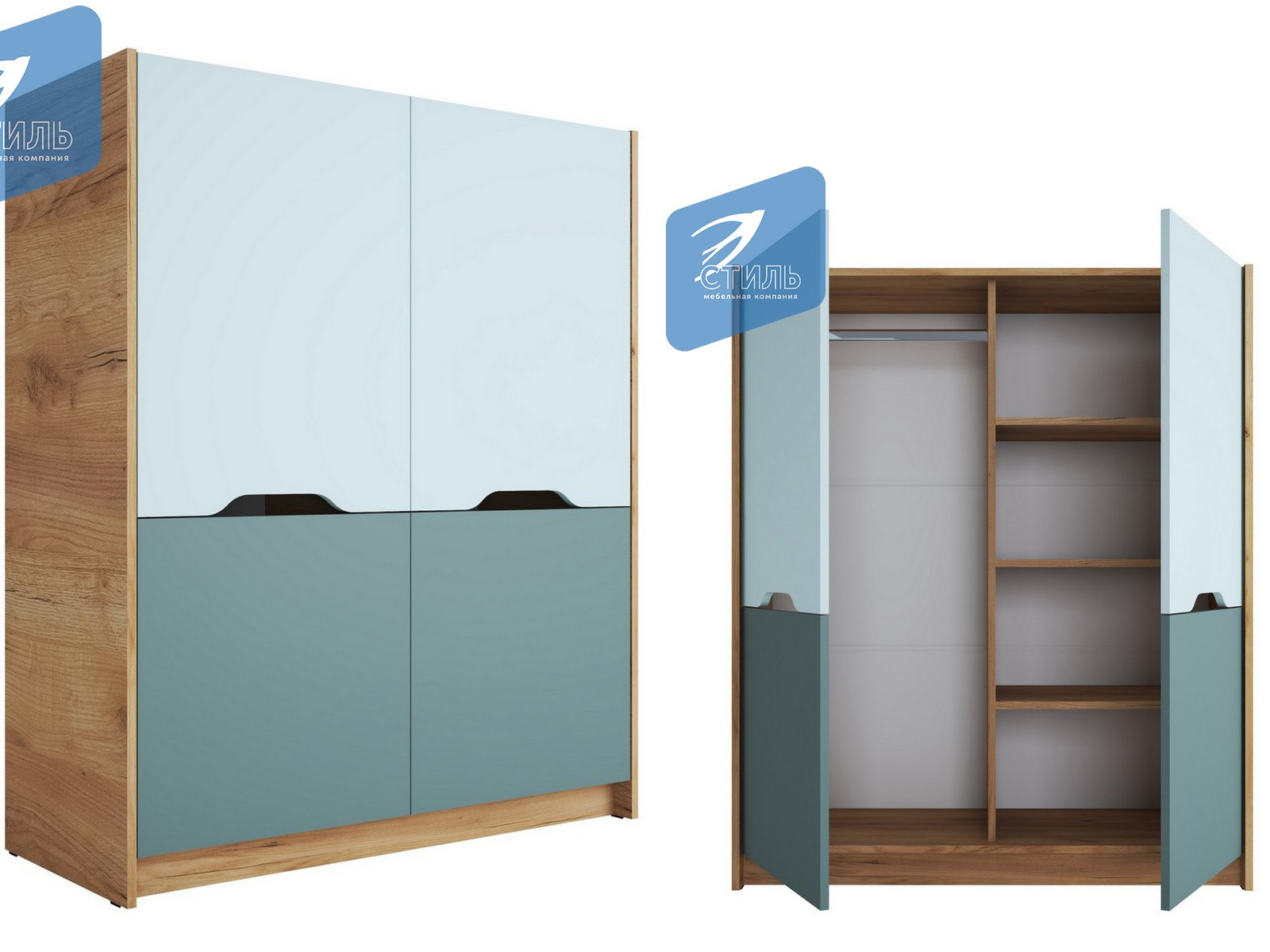 Цвет: корпус - дуб крафт золотой фасад лдсп - мята / сумеречный голубой