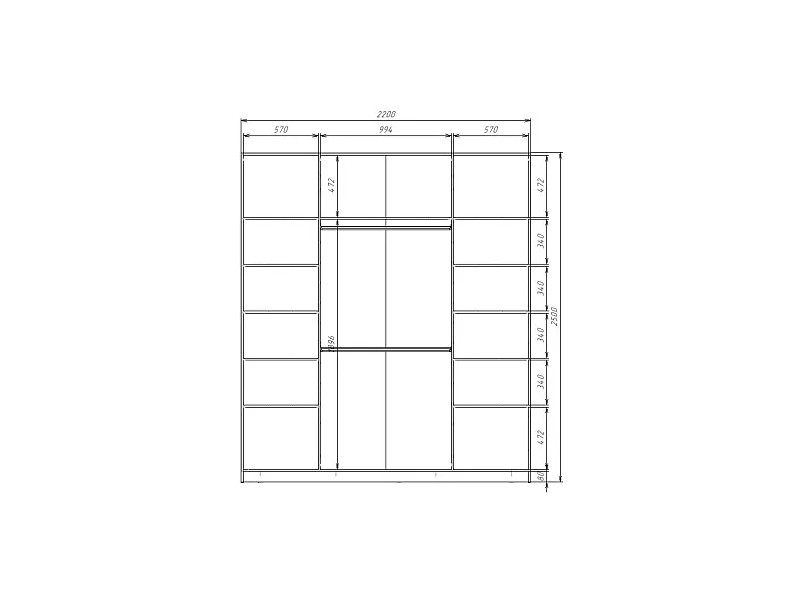 - Шкаф-купе Max МШ-25-6-22/2-22 пленка Oracal светло-серая
