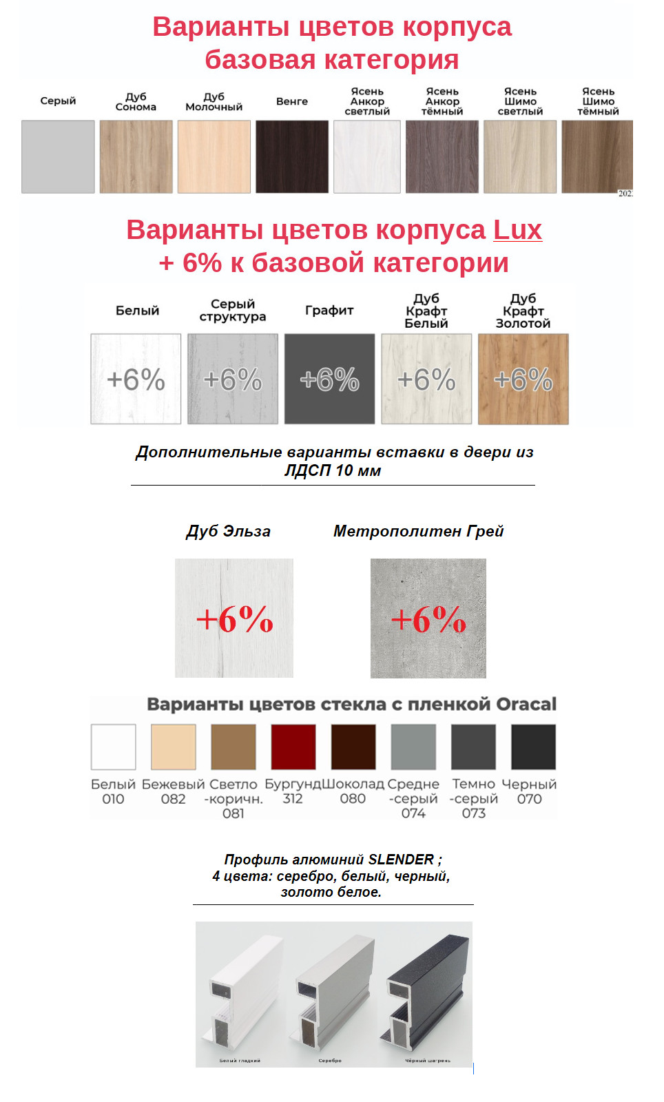 Профиль алюминий SLENDER: 4 цвета: серебро, белый, черный, золото белое.
