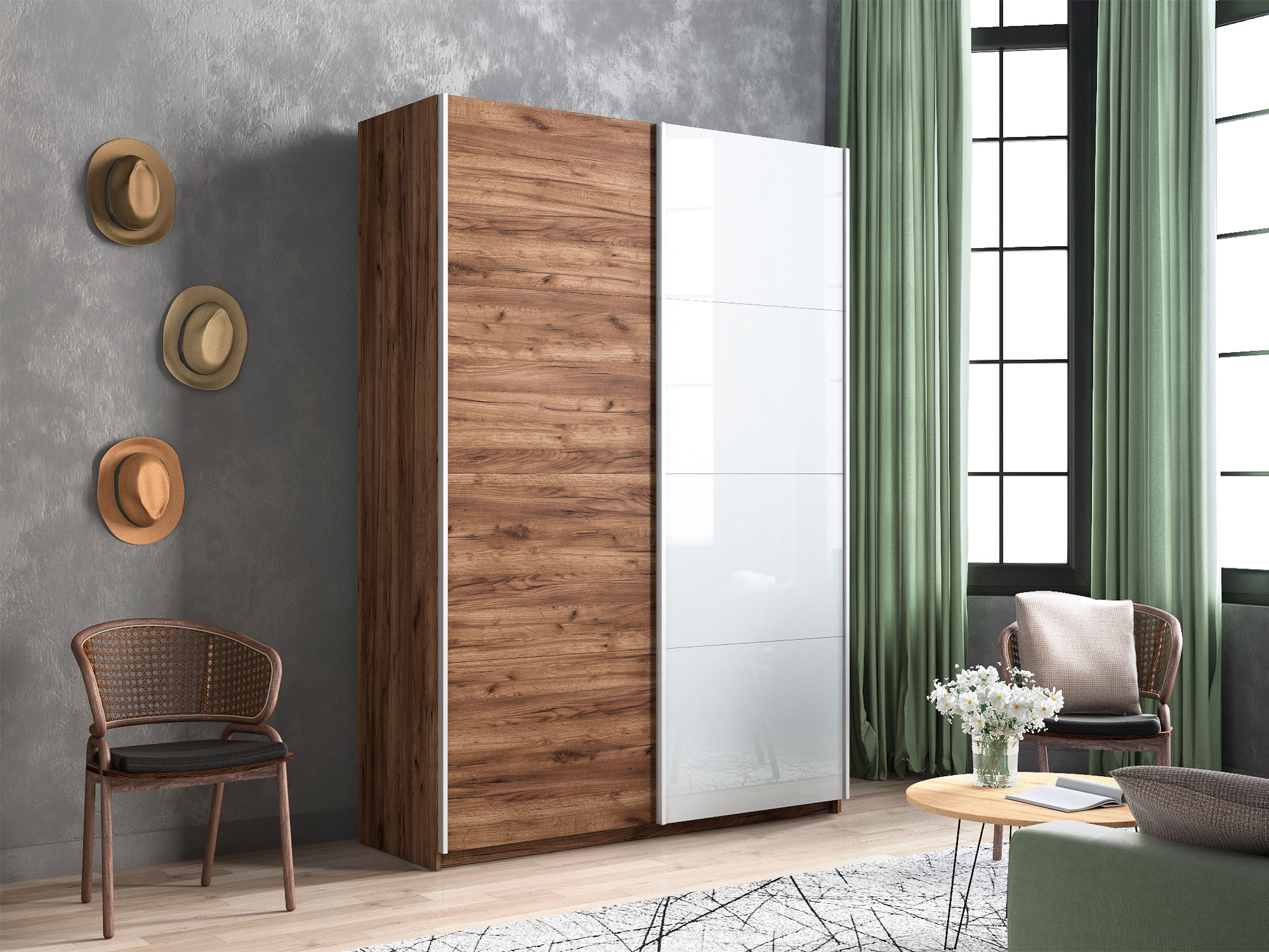 - Шкаф-купе Прайм 2-х дверный 1200 ДСП/Стекло Белое Крафт табачный