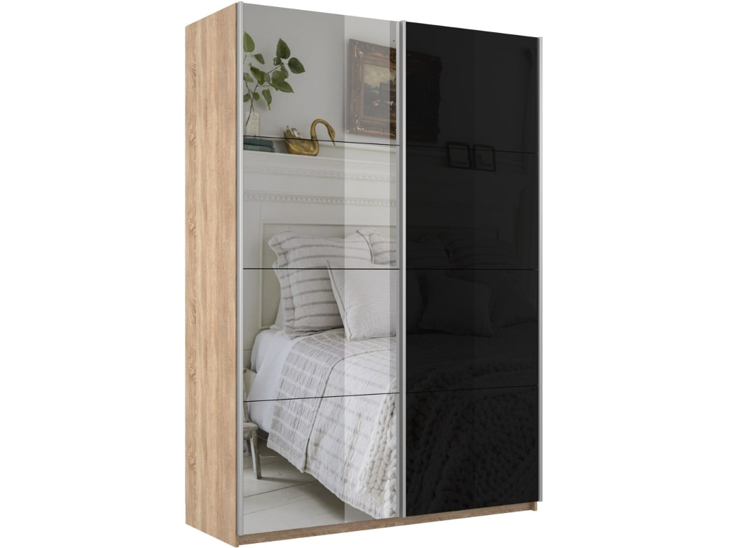 - Шкаф-купе Прайм 2-х дверный 1200 Зеркало/Стекло Черное Сонома