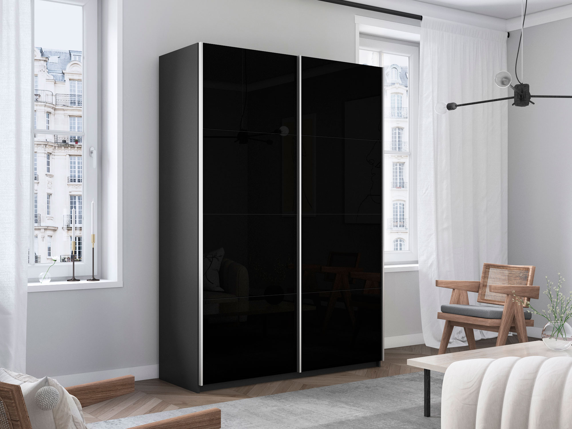 - Шкаф-купе Прайм 2-х дверный 1400 Стекло Черное Серый Диамант