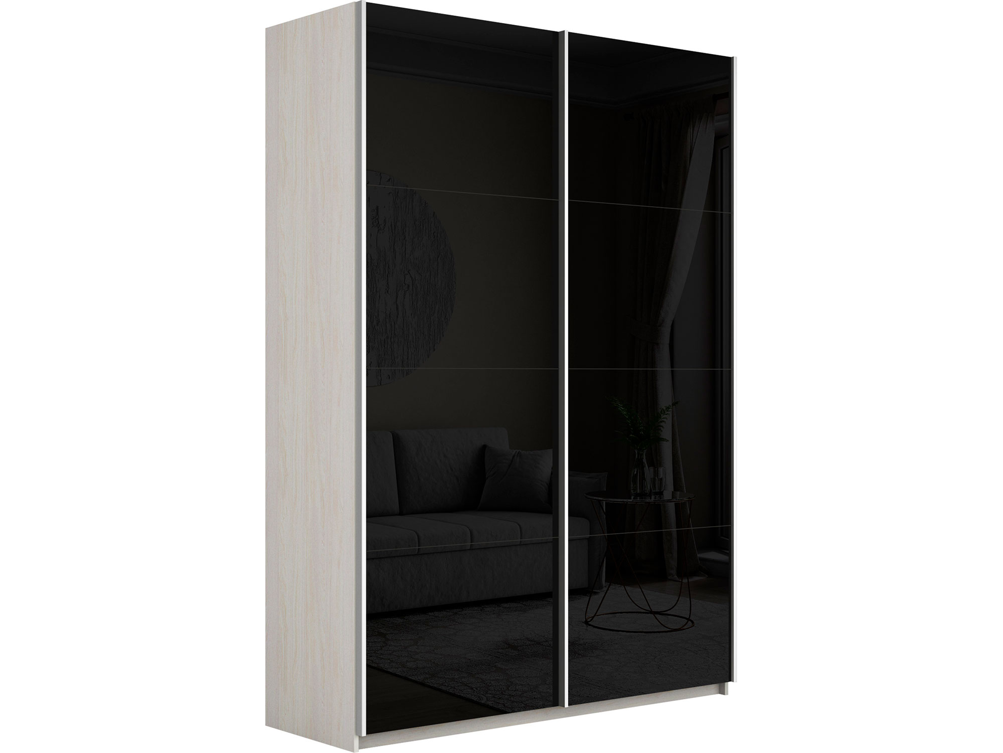 Шкаф-купе Прайм 2-х дверный 1400 Стекло Черное Ясень Анкор Светлый