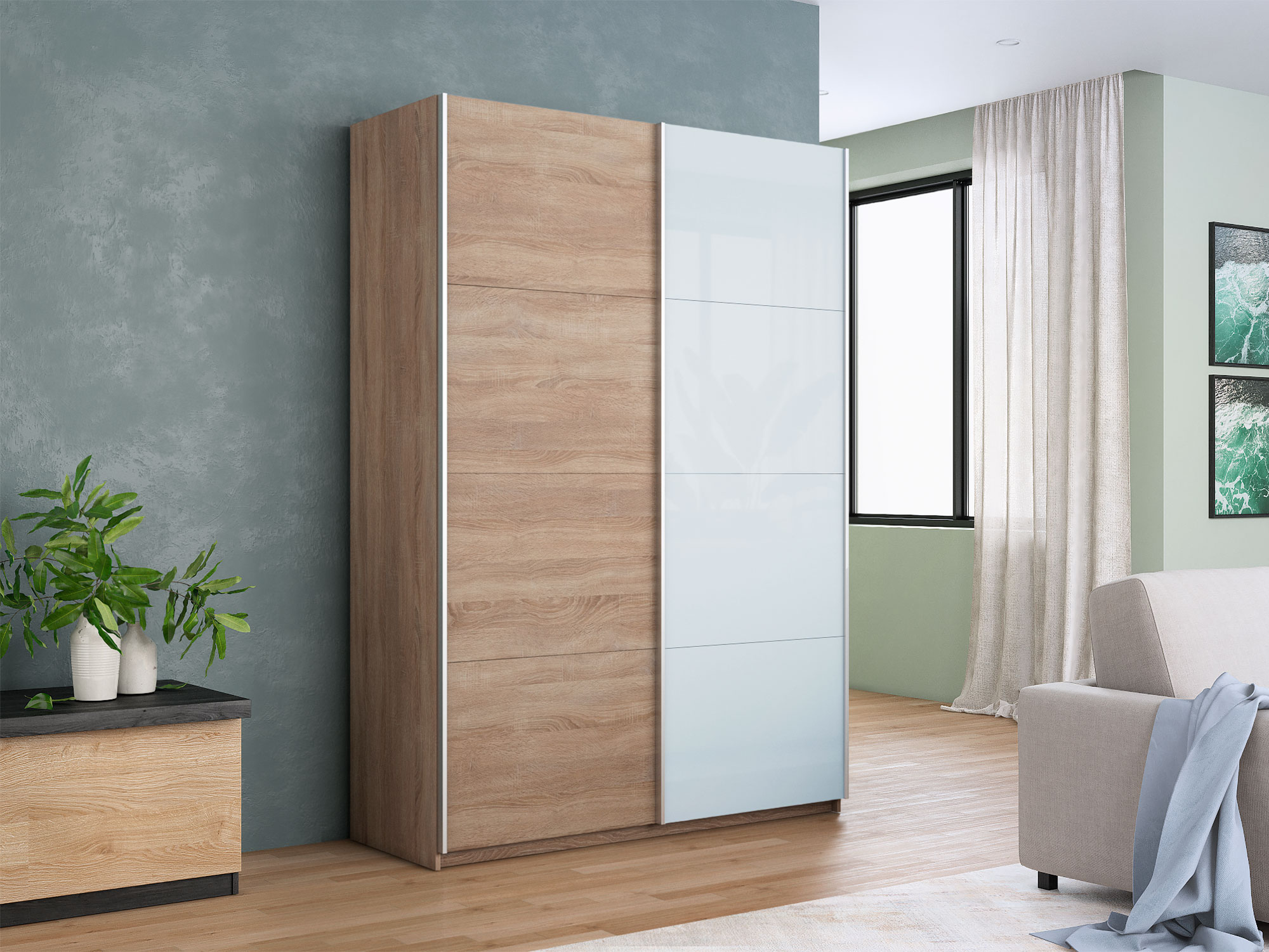 - Шкаф-купе Прайм 2-х дверный 1600 ДСП/Стекло Белое Сонома