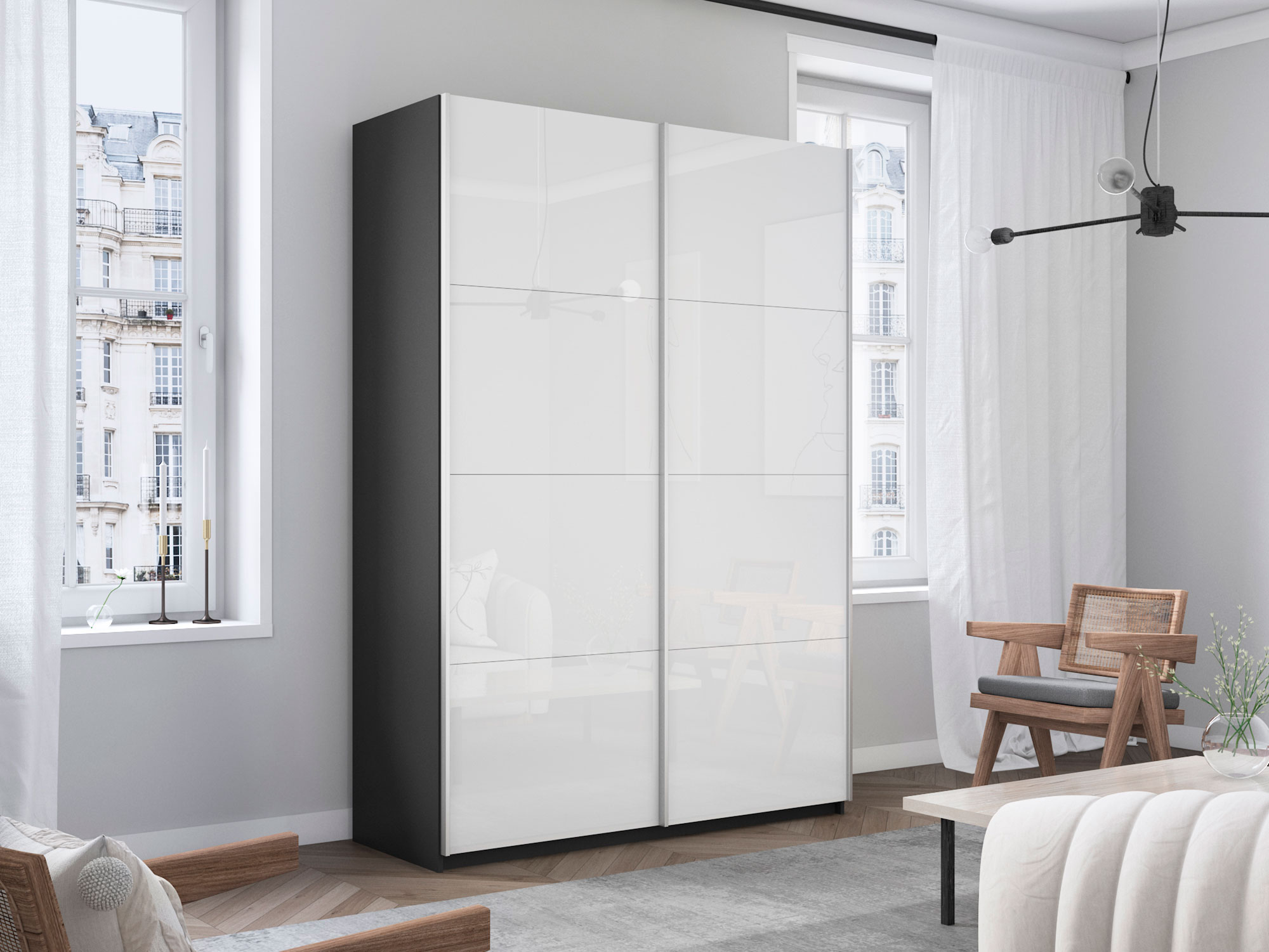 - Шкаф-купе Прайм 2-х дверный 1600 Стекло Белое Серый Диамант