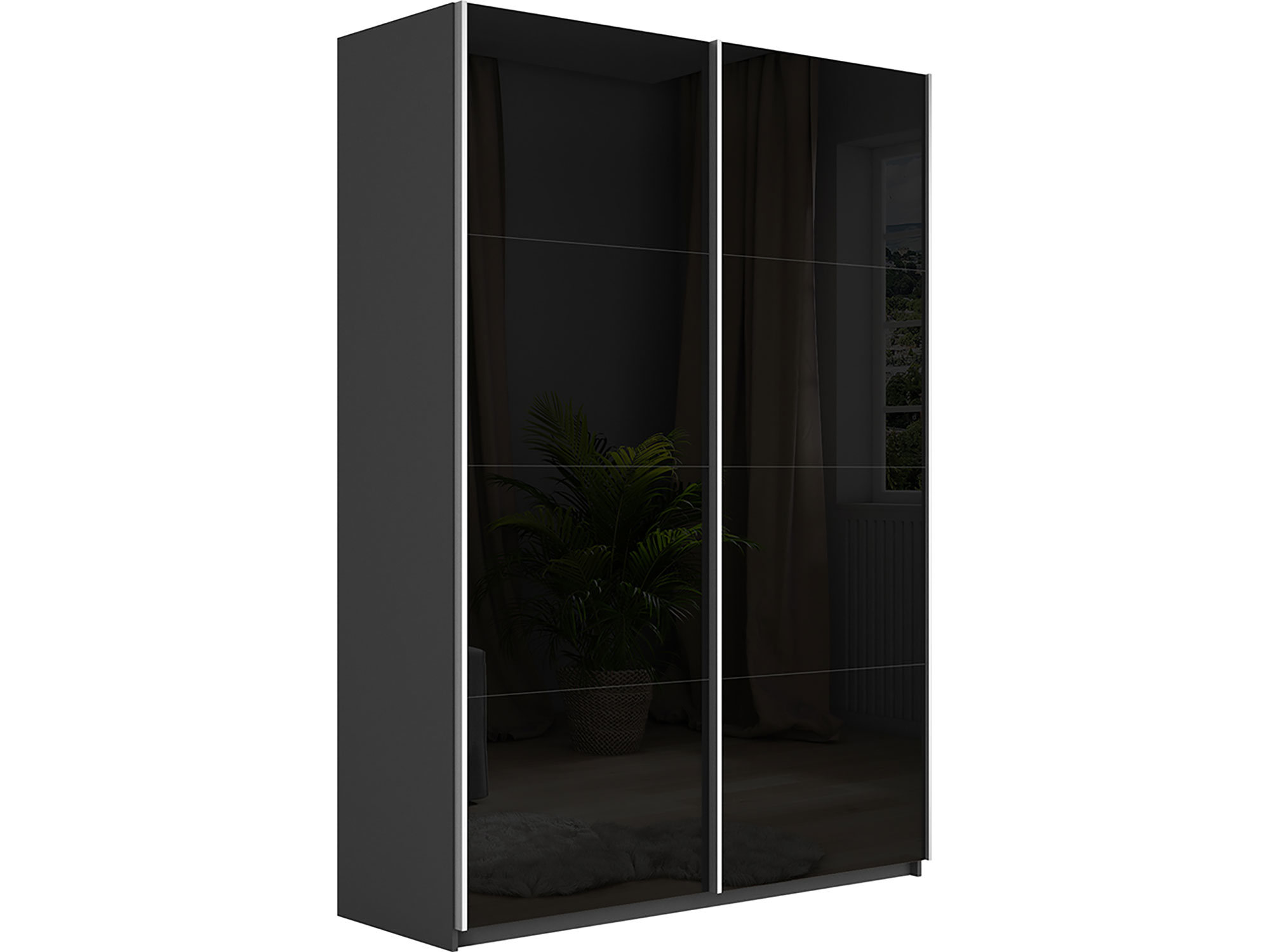 - Шкаф-купе Прайм 2-х дверный 1600 Стекло Черное Серый Диамант
