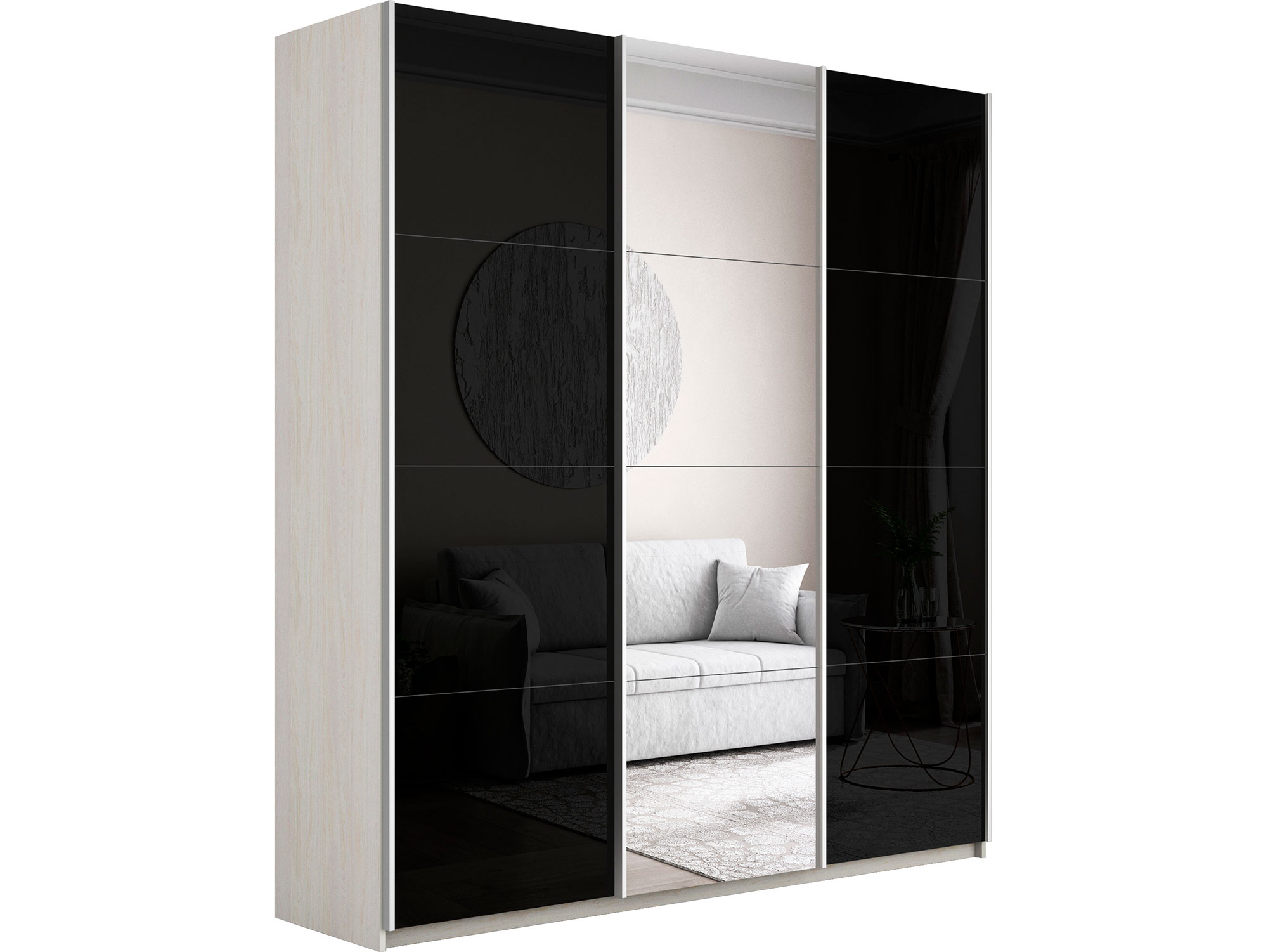- Шкаф-купе Прайм 3-х дверный 1800 два Стекла Черные/Зеркало Ясень Анкор Светлый
