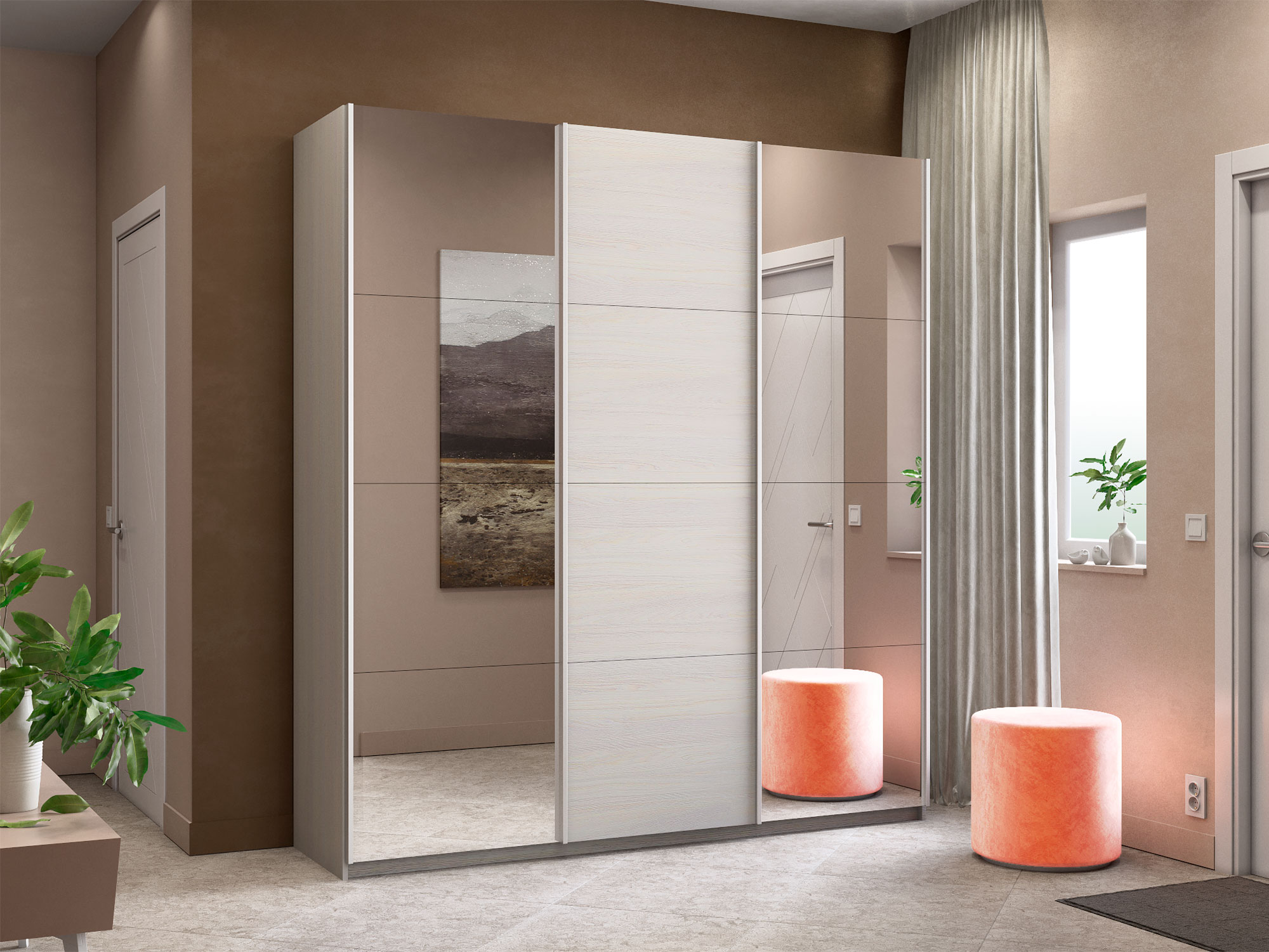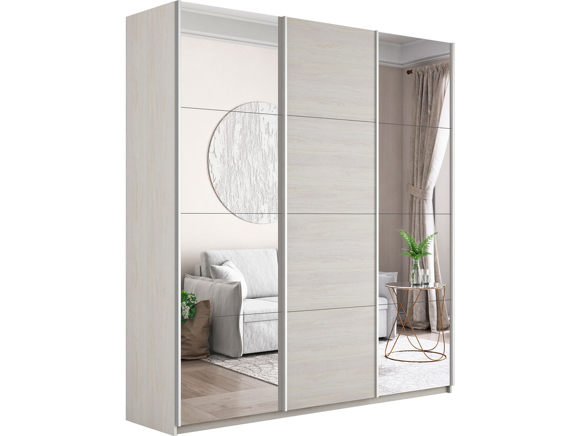 - Шкаф-купе Прайм 3-х дверный 1800 два Зеркала/ДСП Ясень Анкор Светлый