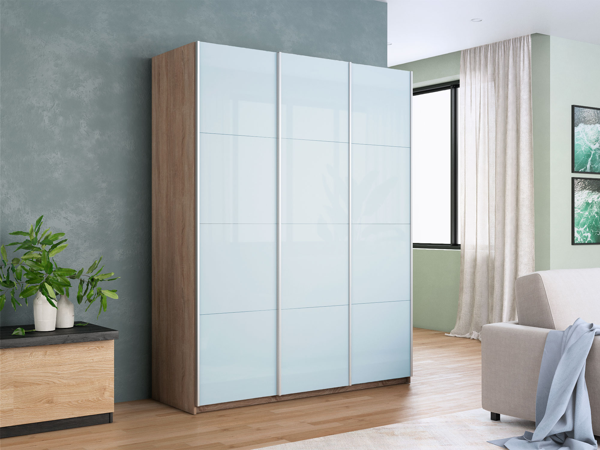 - Шкаф-купе Прайм 3-х дверный 1800 три стекла белые Сонома