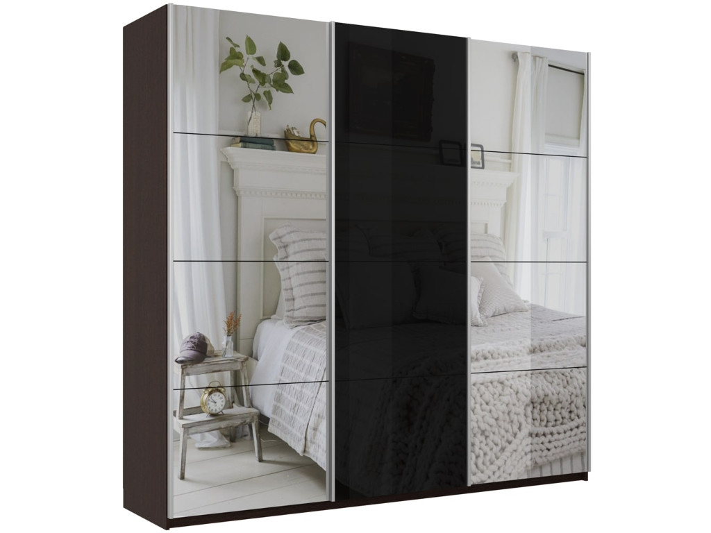 Шкаф-купе Прайм 3-х дверный 1800 Зеркало/Стекло Черное/Зеркало Венге
