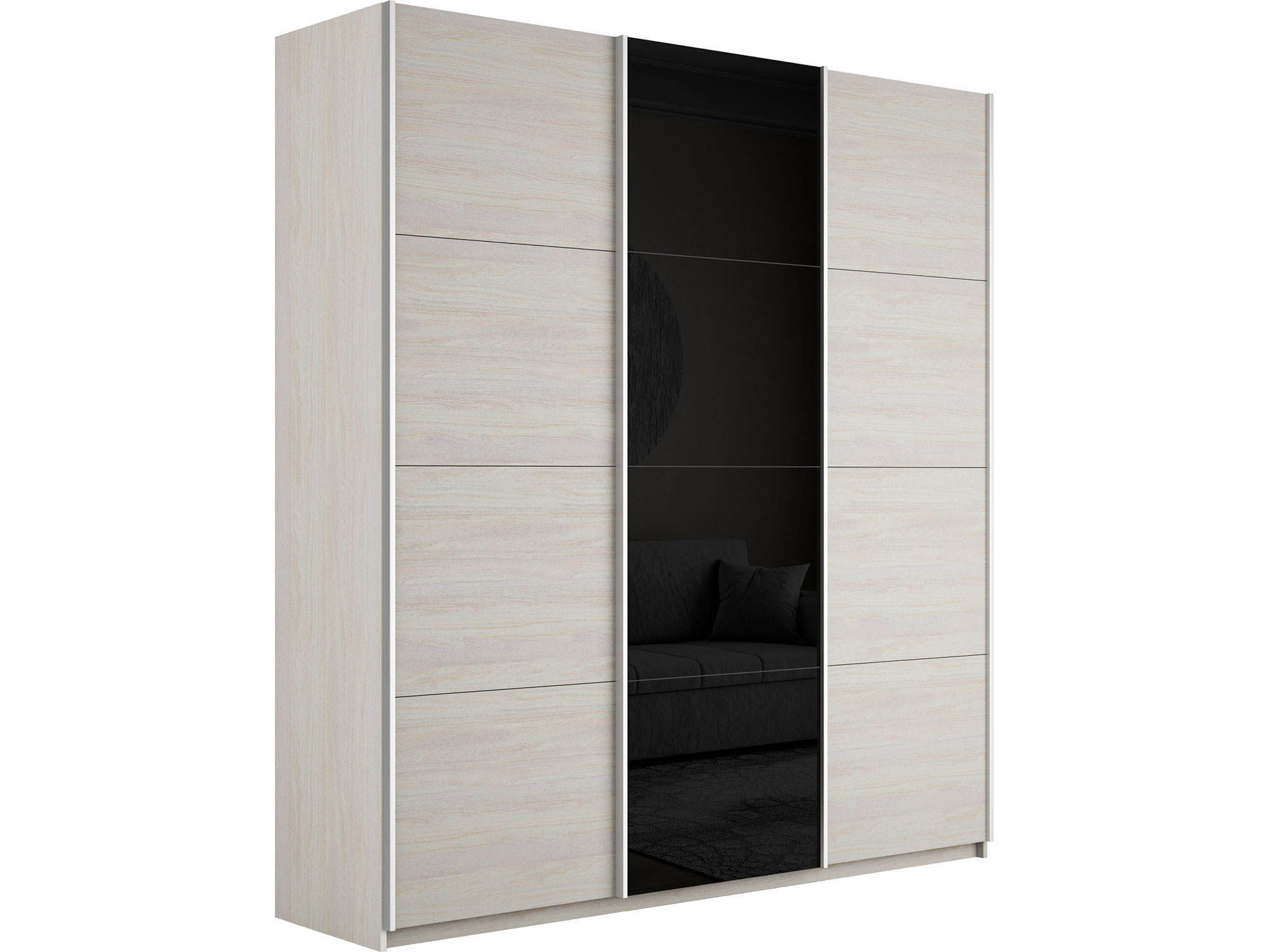 - Шкаф-купе Прайм 3-х дверный 2100 ДСП/Стекло Черное/ДСП Ясень Анкор Светлый