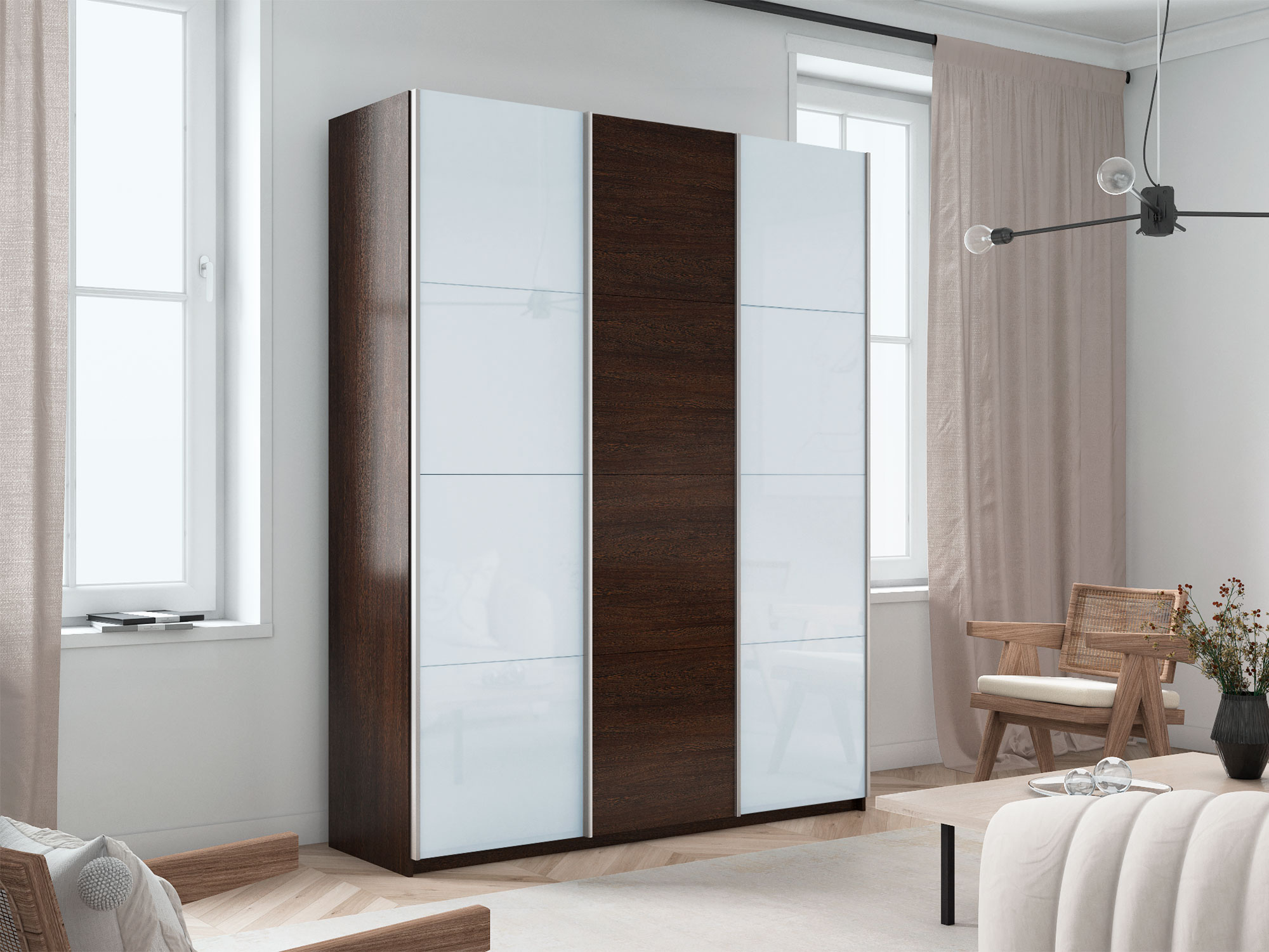 - Шкаф-купе Прайм 3-х дверный 2100 два Стекла Белые/ДСП Венге