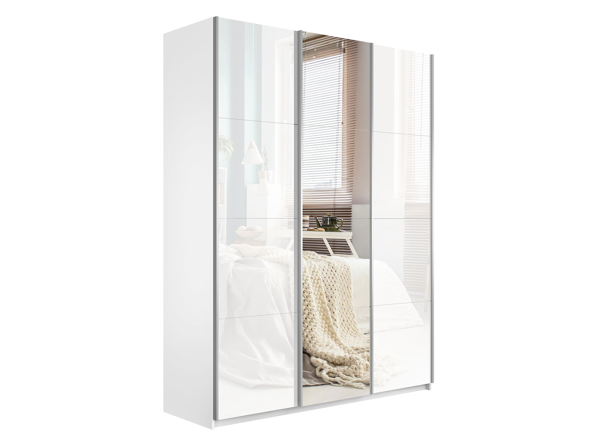 Шкаф-купе Прайм 3-х дверный 2100 два Стекла Белые/Зеркало Белый Снег