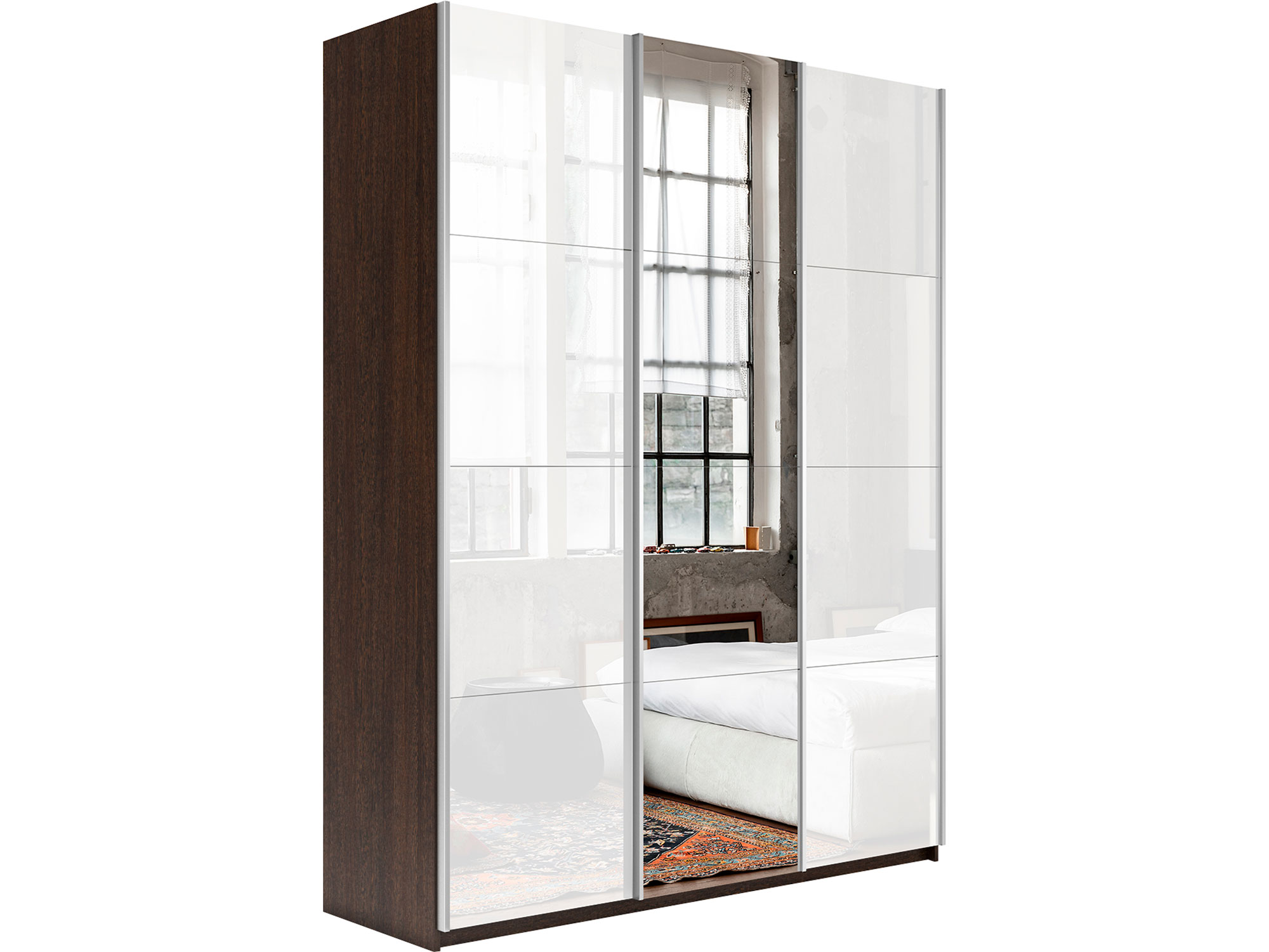 - Шкаф-купе Прайм 3-х дверный 2100 два Стекла Белые/Зеркало Венге