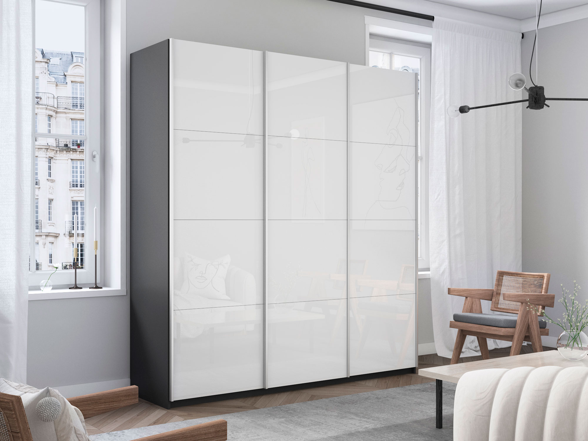 - Шкаф-купе Прайм 3-х дверный 2100 три стекла белые Серый Диамант