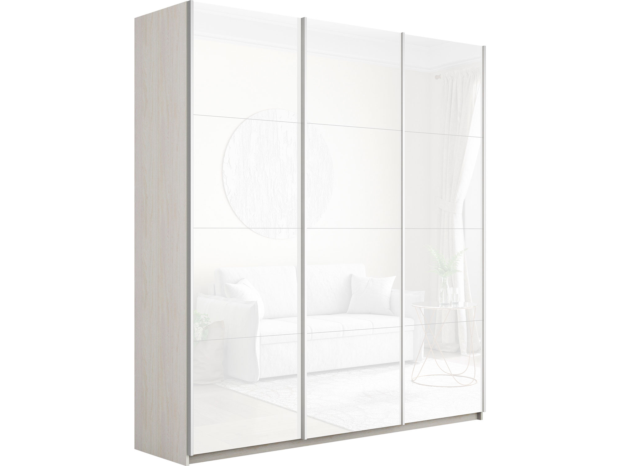 - Шкаф-купе Прайм 3-х дверный 2100 три стекла белые Ясень Анкор Светлый