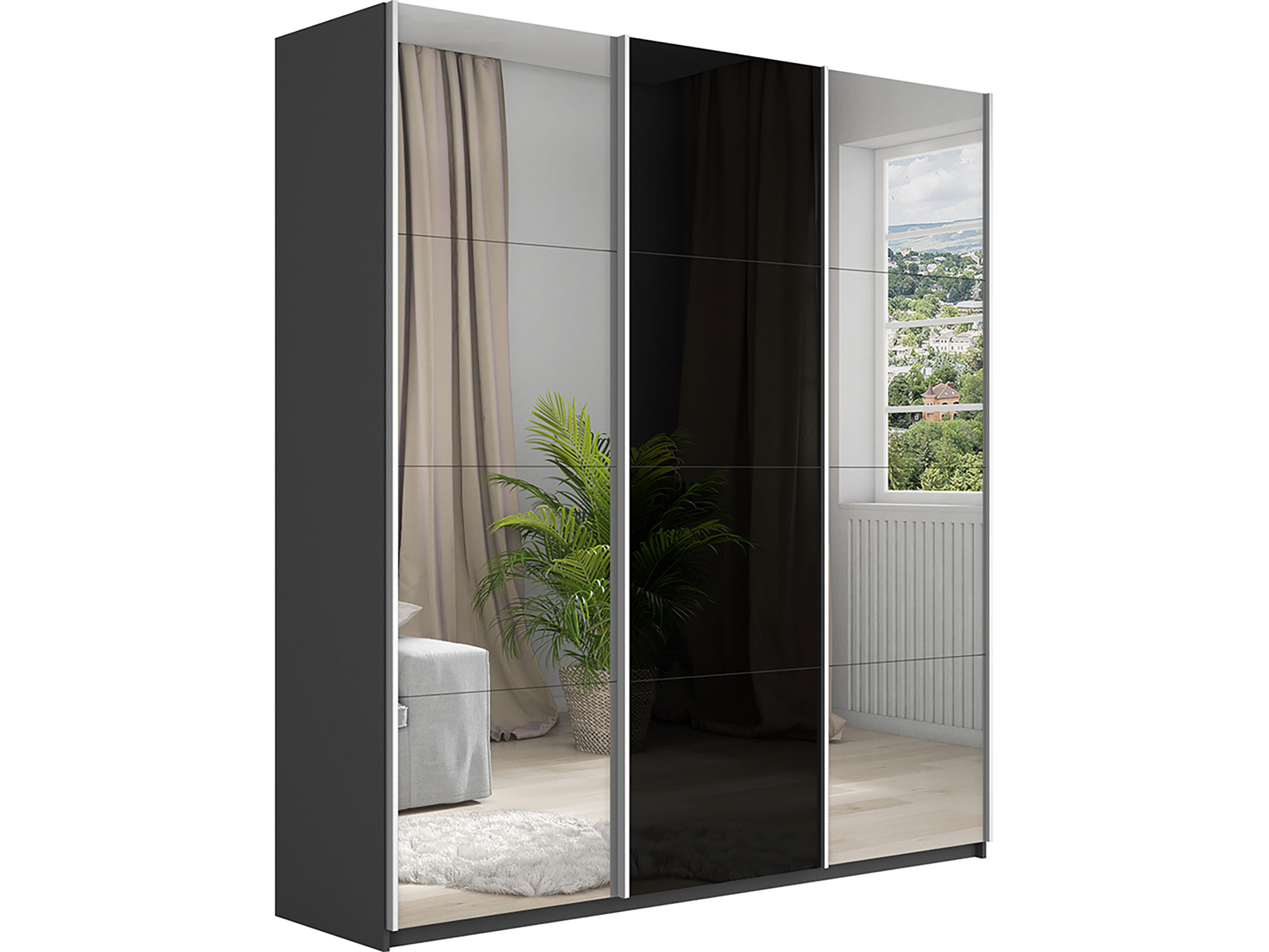 Шкаф-купе Прайм 3-х дверный 2100 Зеркало/Стекло Черное/Зеркало Серый Диамант