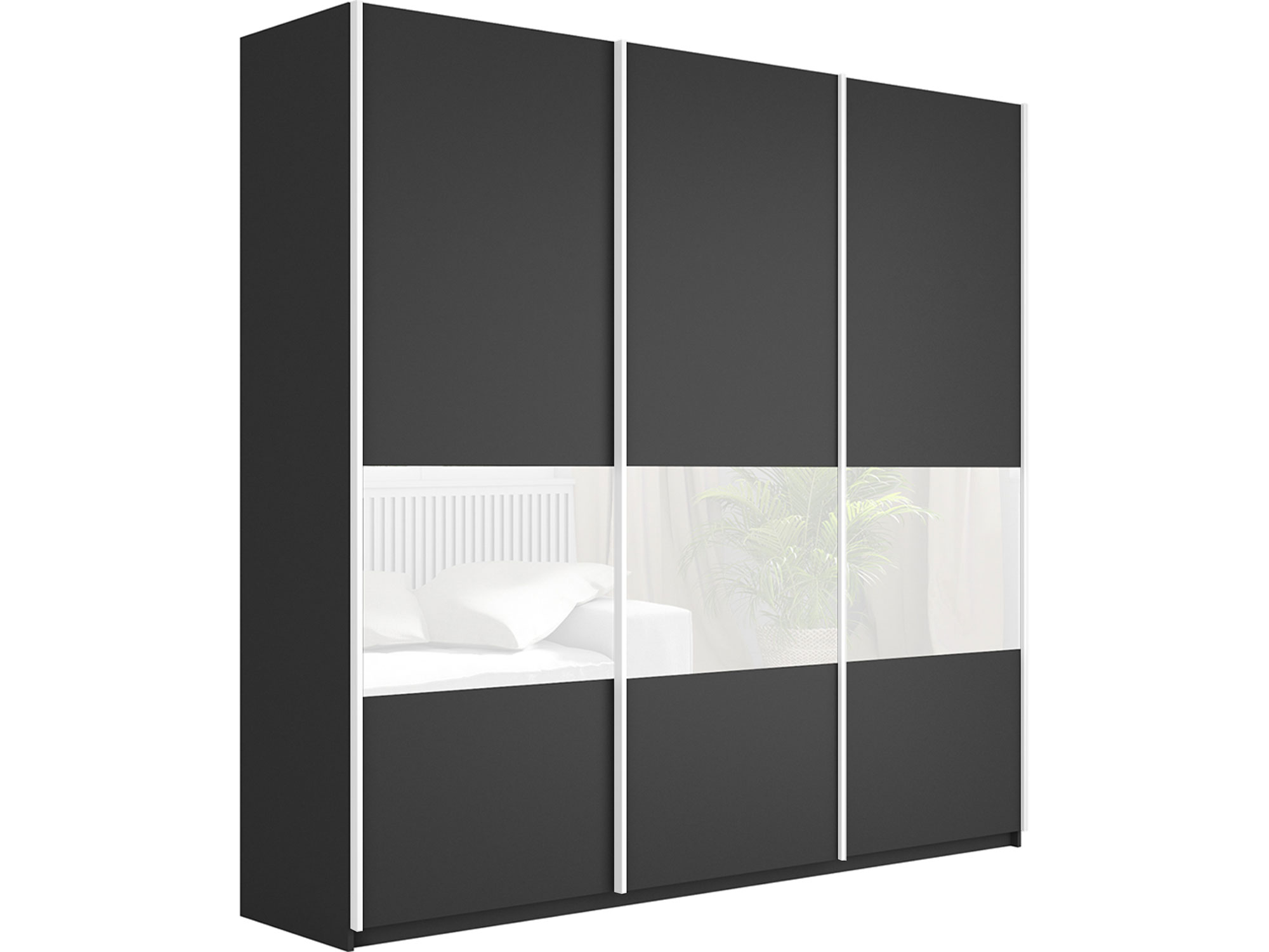 Шкаф-купе Прайм Широкий 3-х дверный ДСП/вставки Стекло Белое Серый Диамант