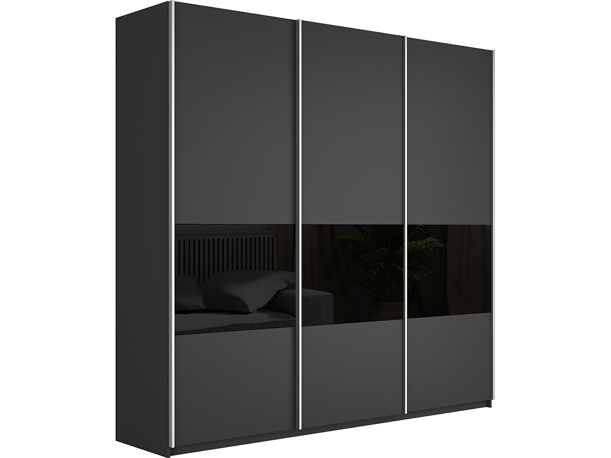 Шкаф-купе Прайм Широкий 3-х дверный ДСП/вставки Стекло Черное Серый Диамант