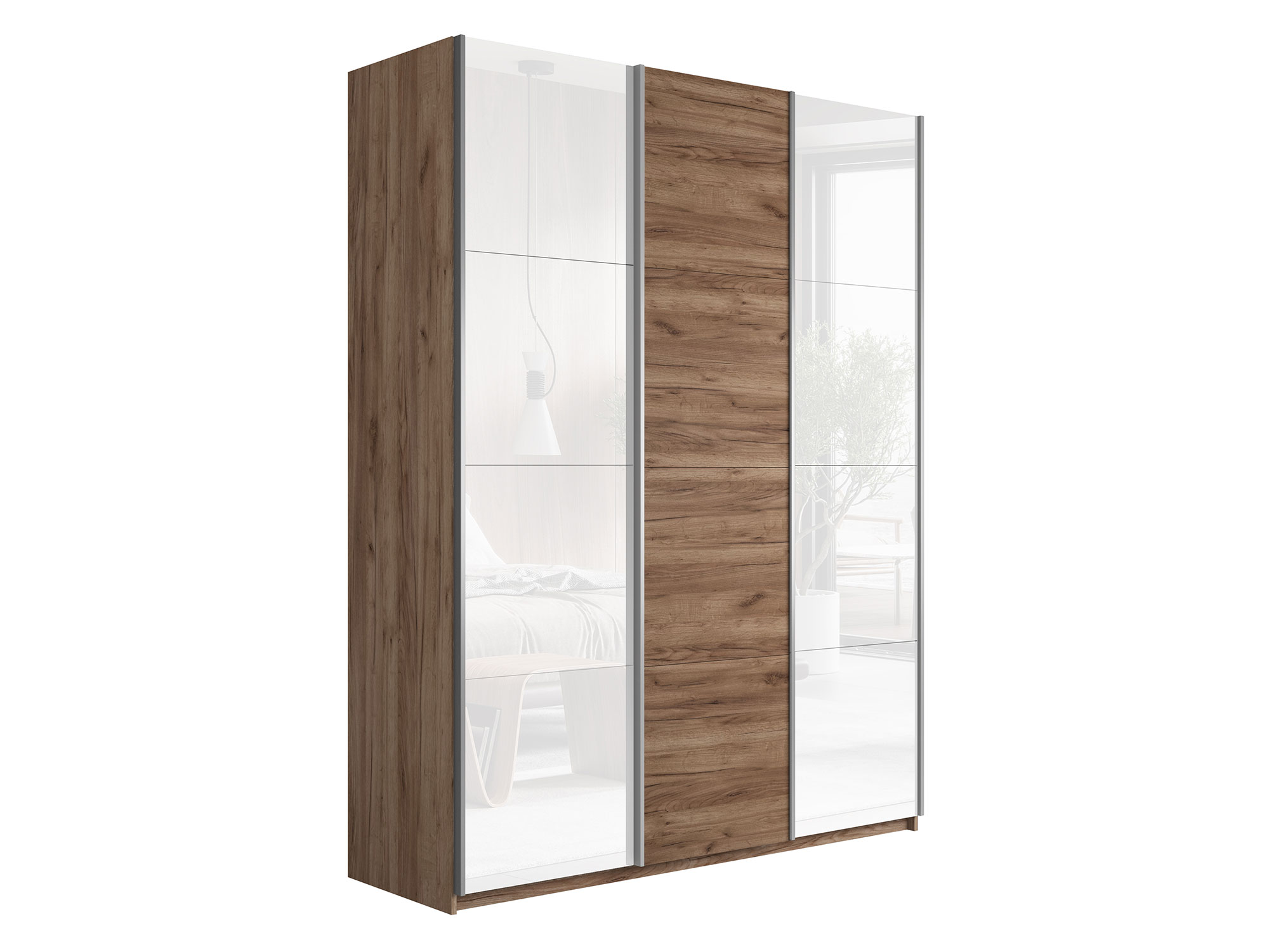 - Шкаф-купе Прайм Широкий 3-х дверный два белых стекла/ДСП Крафт табачный