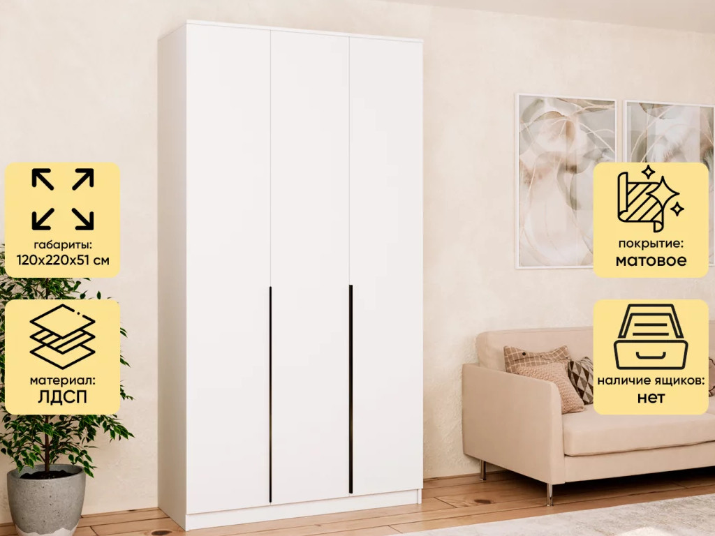 Шкаф Монблан New распашной 1200 3-х дверный Белый