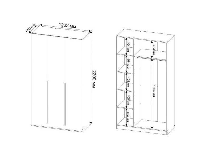 Размеры В*Ш*Г, мм: 2200х1202х510