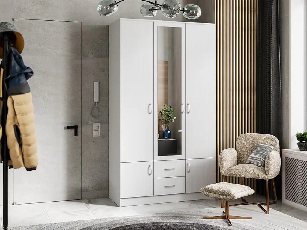 Шкаф Ронда ШК-3 с зеркалом белое дерево