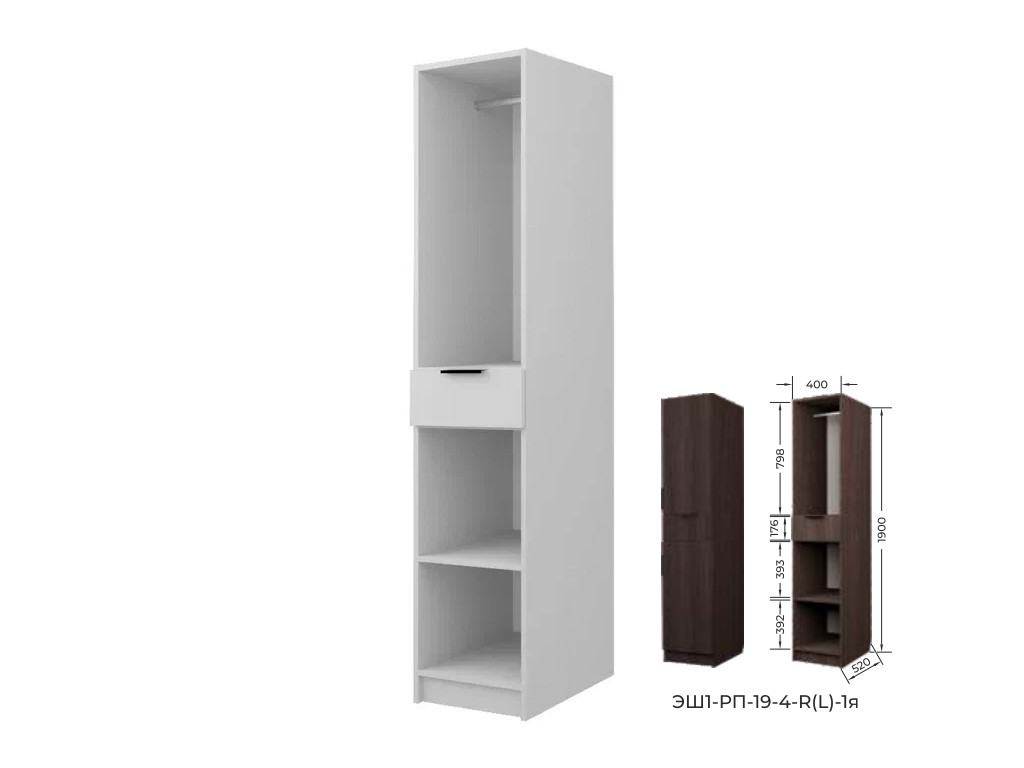 Шкаф с 1 ящиком со штангой Экон ЭШ1-РП-19-4-R-1я с зеркалом