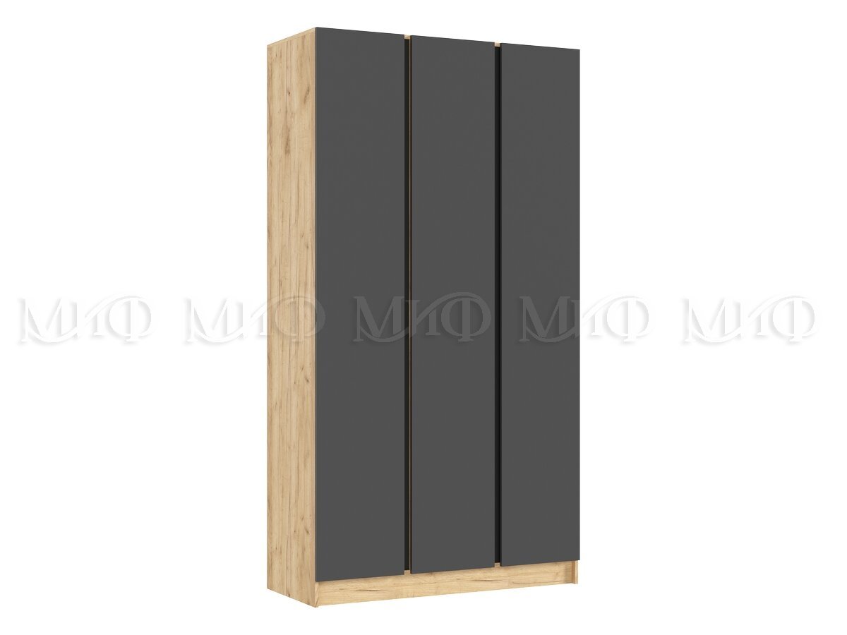 - Шкаф трехстворчатый Келвин (1200) Графит, Дуб Крафт-вставка черная