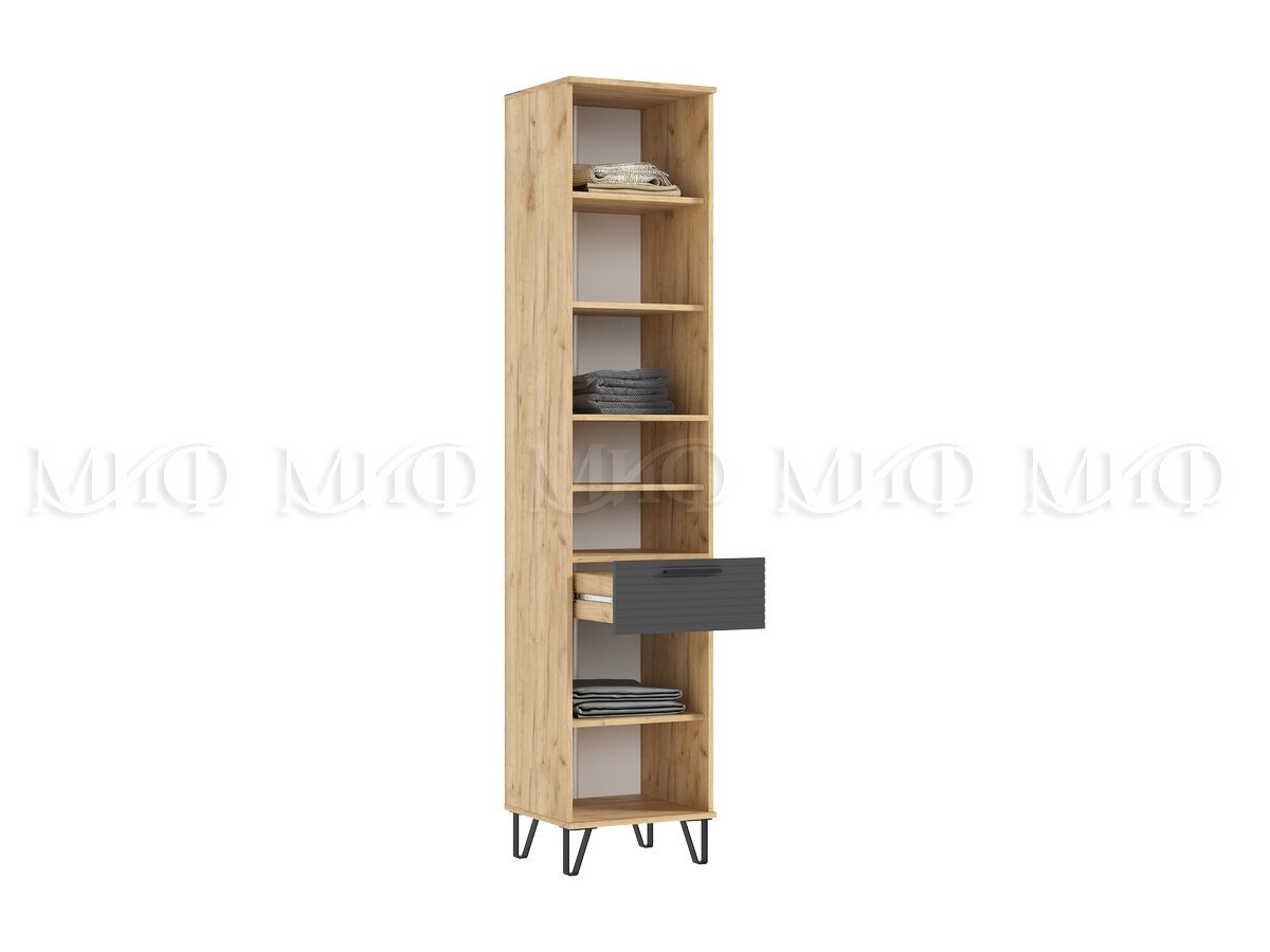Пенал открытый в прихожую Флэш Браш Графит, Дуб Крафт