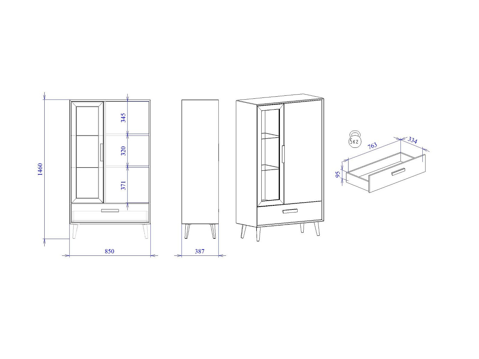 Макс.нагрузка на полку (кг): 5