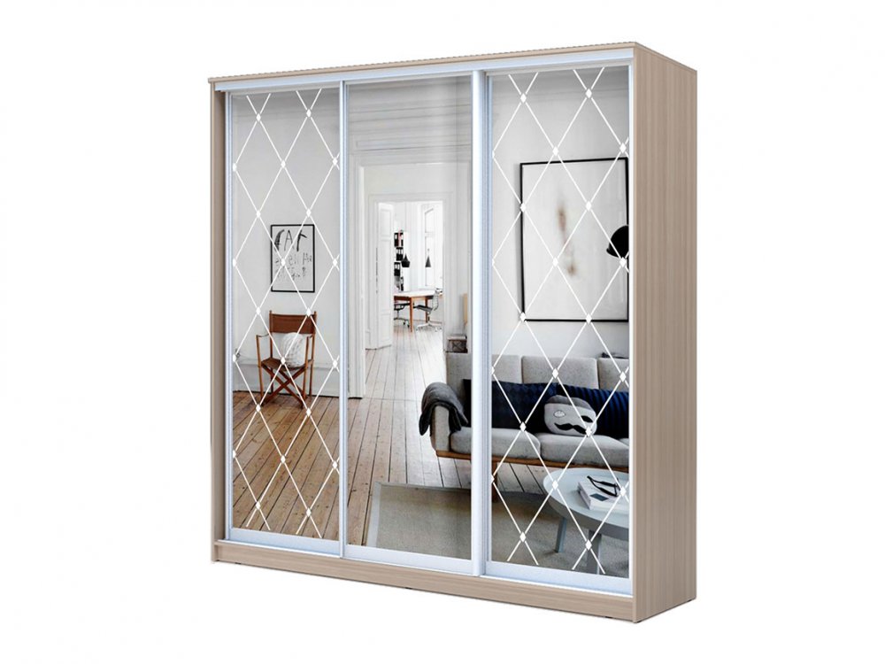 - 1 дверь Зеркало + 2 двери Зеркало с пескоструйной обработкой