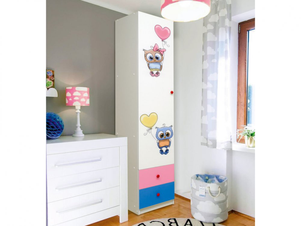 Шкаф однодверный с ящиками и фотопечатью Совята 1.1