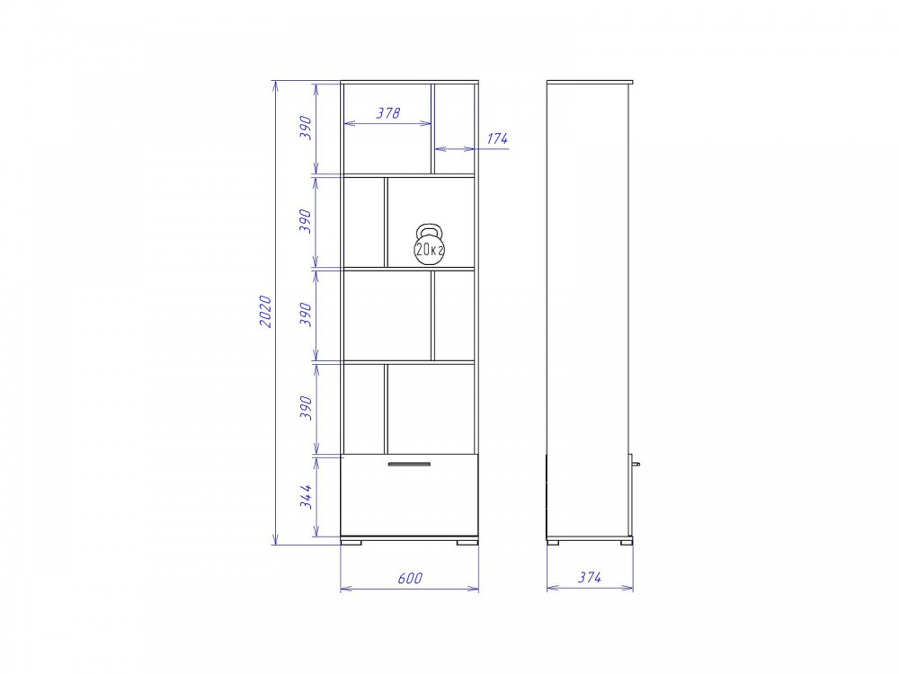 Размер ШхГхВ: 600*380*2020 мм